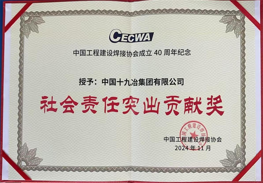 中国工程建设焊接协会“社会责任突出贡献奖”