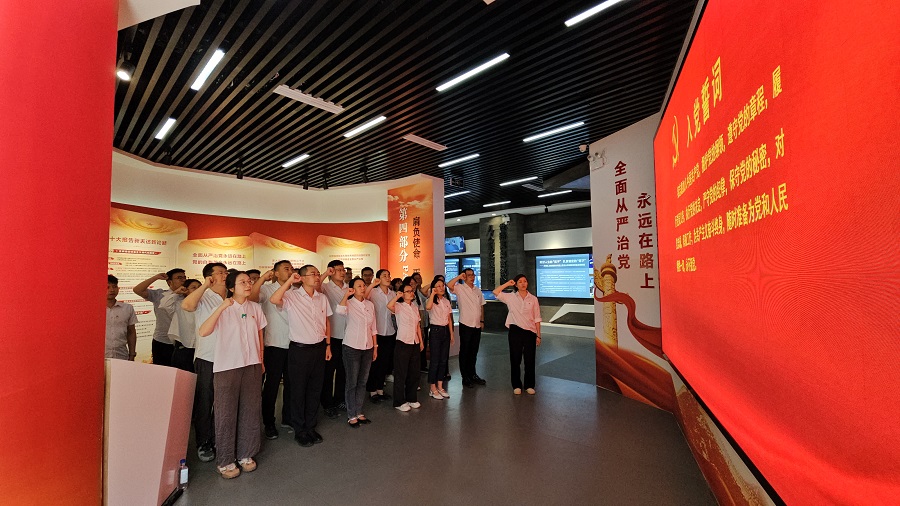 在讲解员的带领下,全体人员先后参观了“窑洞之问、两个答案”“挺纪在前、筑牢防线”“以案为鉴、警钟长鸣”和“肩负使命、砥砺前行”四个展区。借助多媒体技术、图文资料、案例展示等,生动呈现党的反腐倡廉历程和当前反腐败斗争形势;精选典型腐败案例和微电影《初心》,深刻揭示违纪违法对个人、家庭和社会的多重危害,给参观人员带来强烈思想冲击。活动最后,全体党员一起重温入党誓词,面向党旗庄严宣誓,进一步强化理想信念和纪律意识。